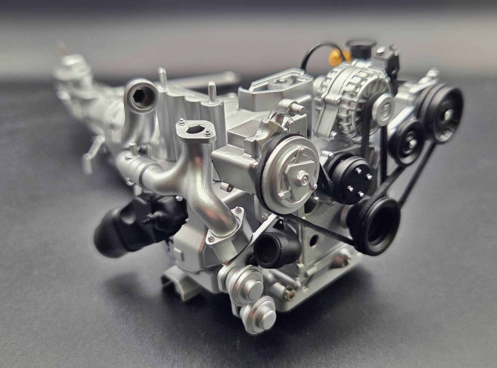 ターボチューブは割とガッチリしていて作りがいいです。前号のターボユニットにターボチューブを取り付けて、いよいよエンジンに取り付けます。